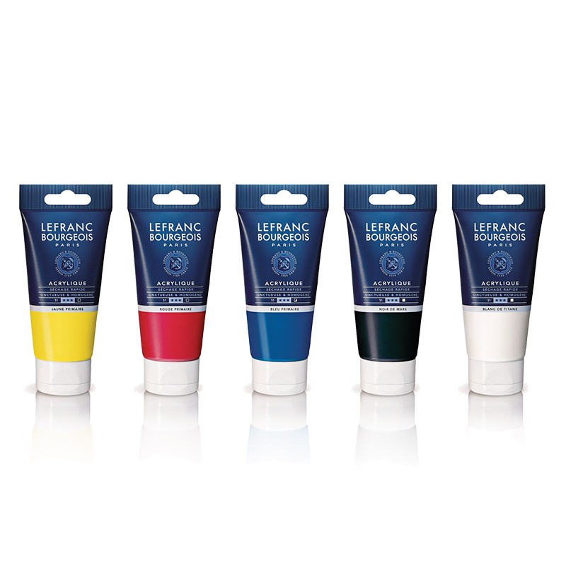 Fine Acrylic Colours marki Lefranc & Bourgeois - 5 kolorów w tubkach o pojemności 80 ml.
