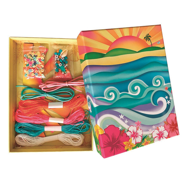 Zestaw MOJE BRANSOLETKI zawiera wszystko co niezbędne by dziecko samodzielnie mogło wykonać różnymi technikami kilka bransoletek. Wykonane prace mogą być przechowywane na dołączonym stojaku jednocześnie będąc fajną dekoracja dziecięcego pokoju. Zestaw zadowoli zarówno młodsze dzieci (dedykowny jedy dla dzieci w wieku od 6 lat) jak i nastolatków.