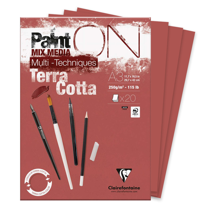 BLOK PAINT ON MIX MEDIA TERRACOTTA A3/20ARK/250G CLAIREFONTAINE