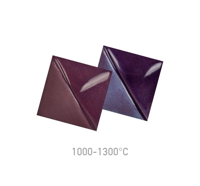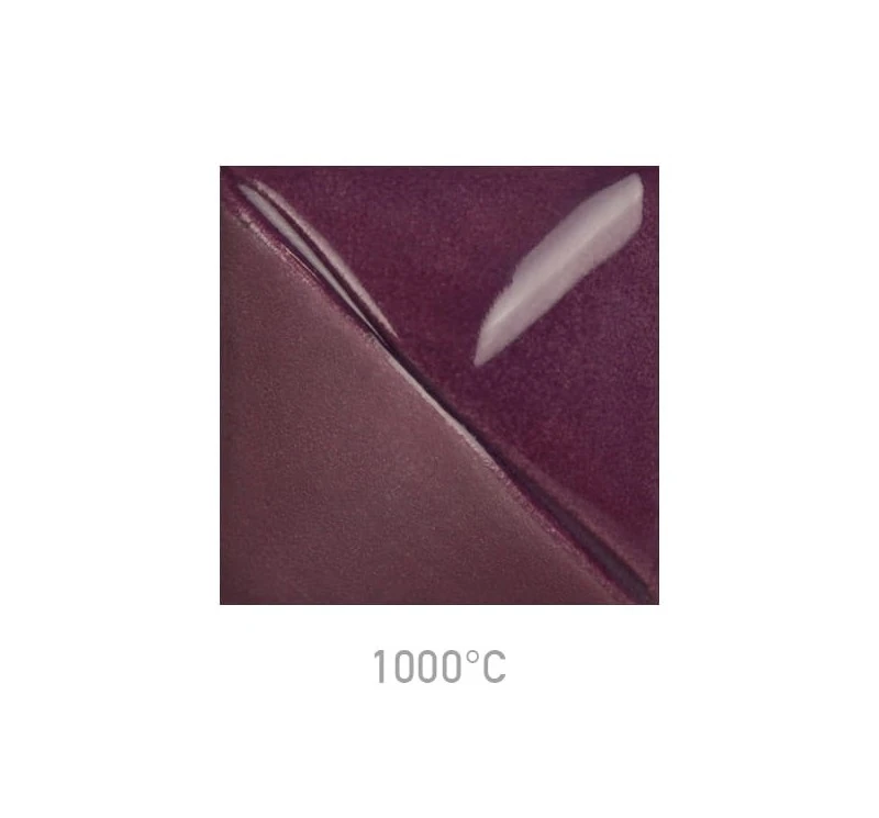 Farba podszkliwna Mayco UG-225 Plum przy wypale na niską temperaturę daje intensywyny, śliwkowy kolor, który nie zmienia się wraz ze wzrostem temperatury wypału.