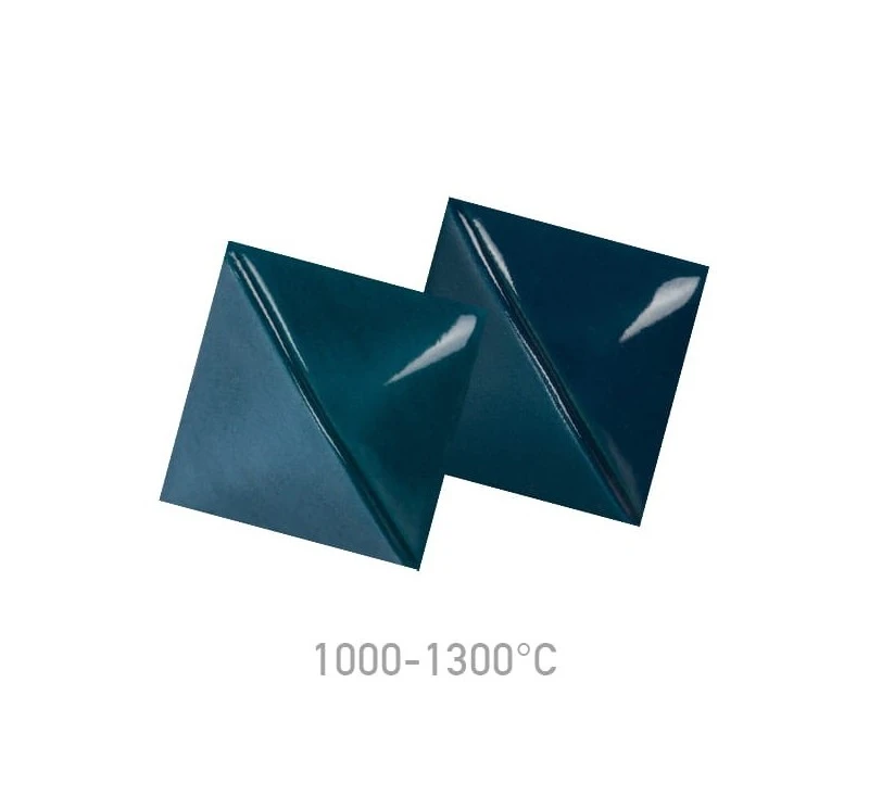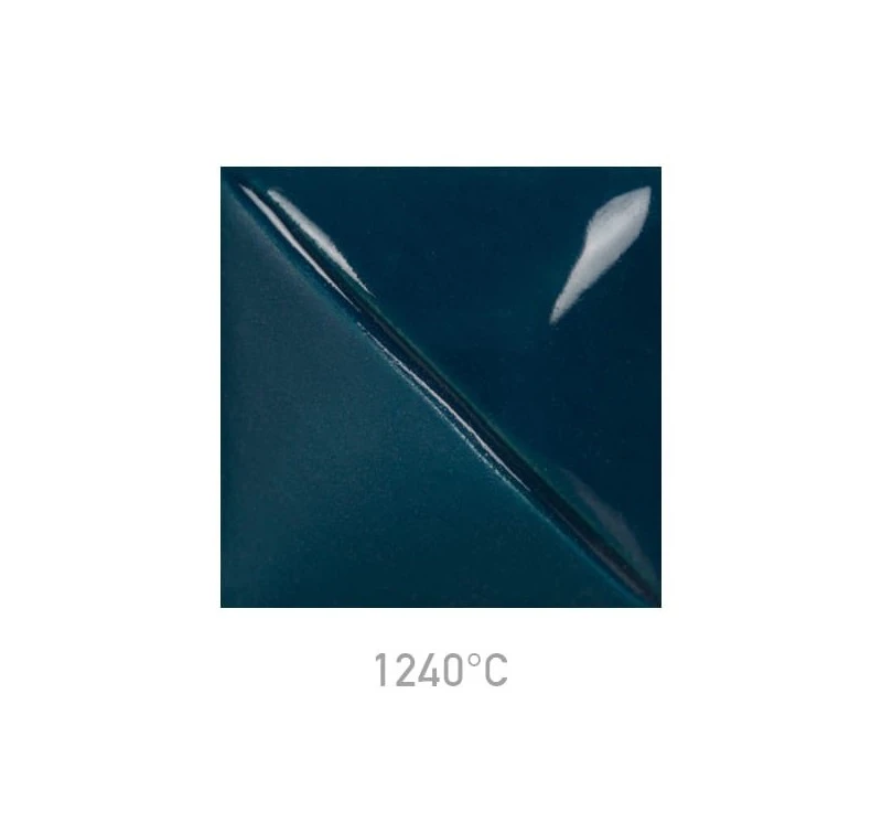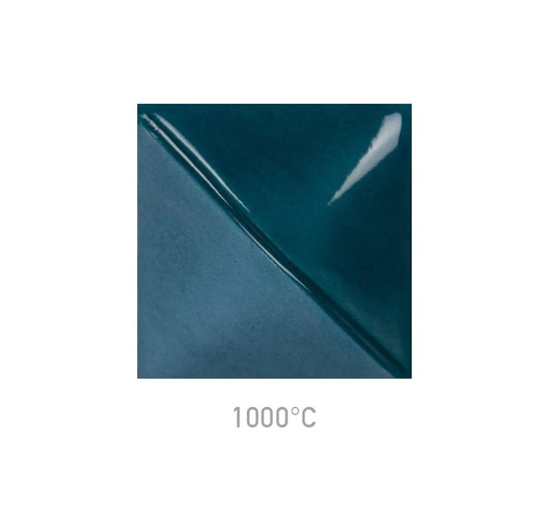 Farba podszkliwna Mayco UG-229 Aquamarine przy wypale na niską temperaturę daje intensywnie morski odcień, który lekko ciemnieje wraz ze wzrostem temperatury wypału.