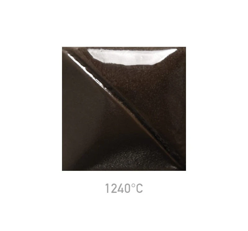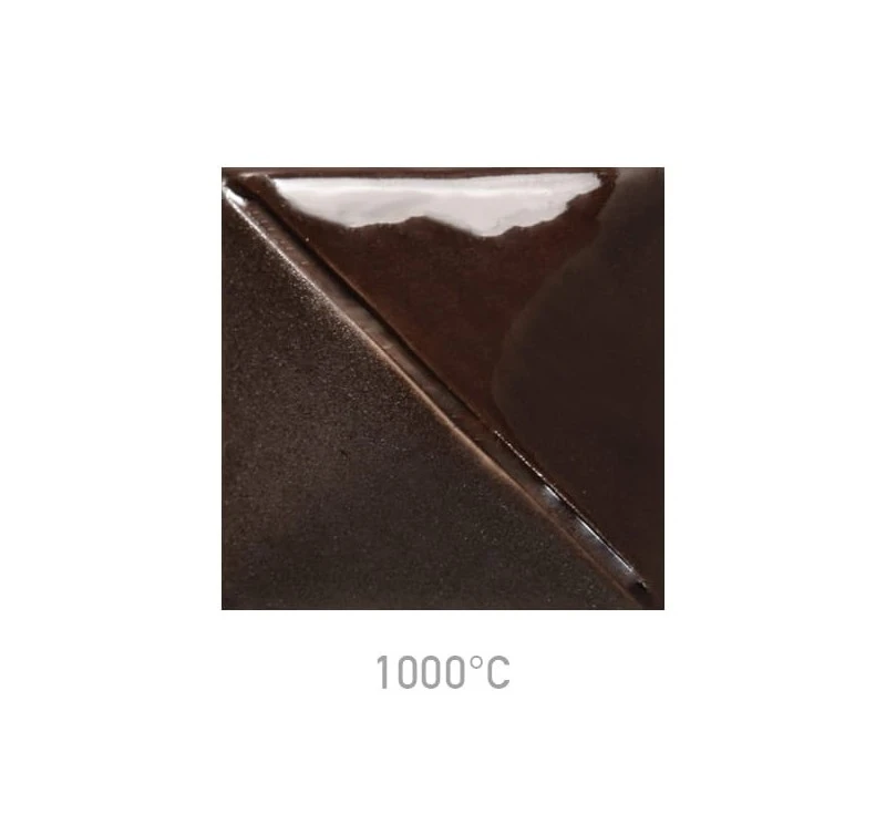 Farba podszkliwna Mayco UG-34 Chestnut Brown przy wypale na niską temperaturę daje głęboki, brązowy kolor, który wraz ze wzrostem temperatury wypału znacząco ciemnieje.