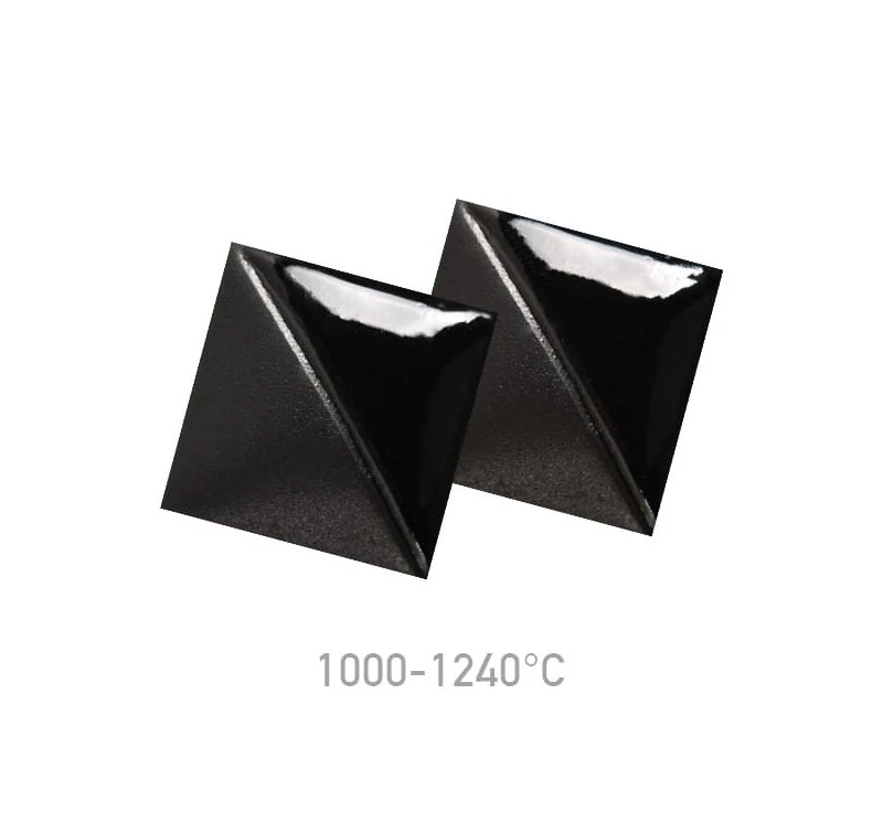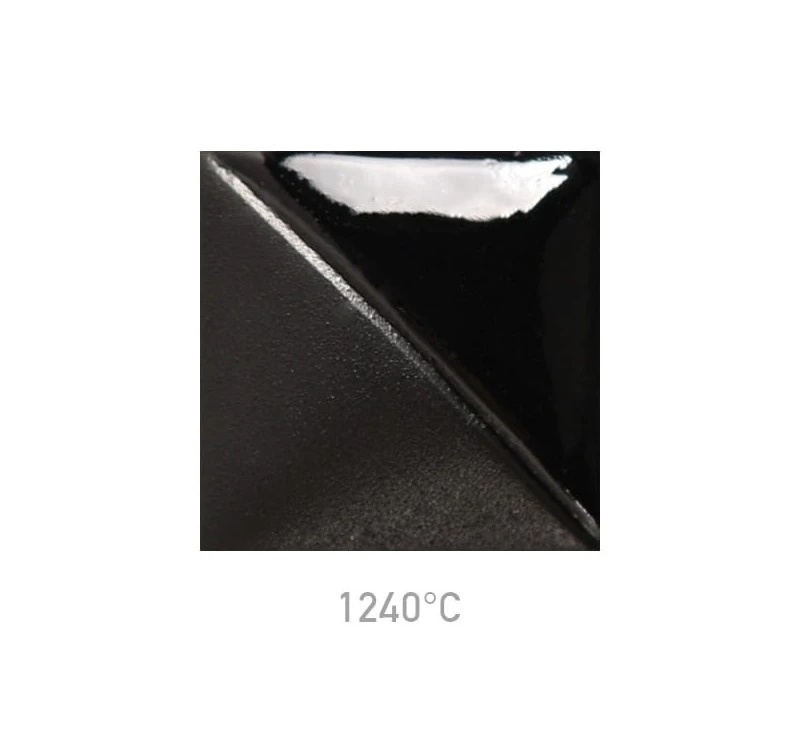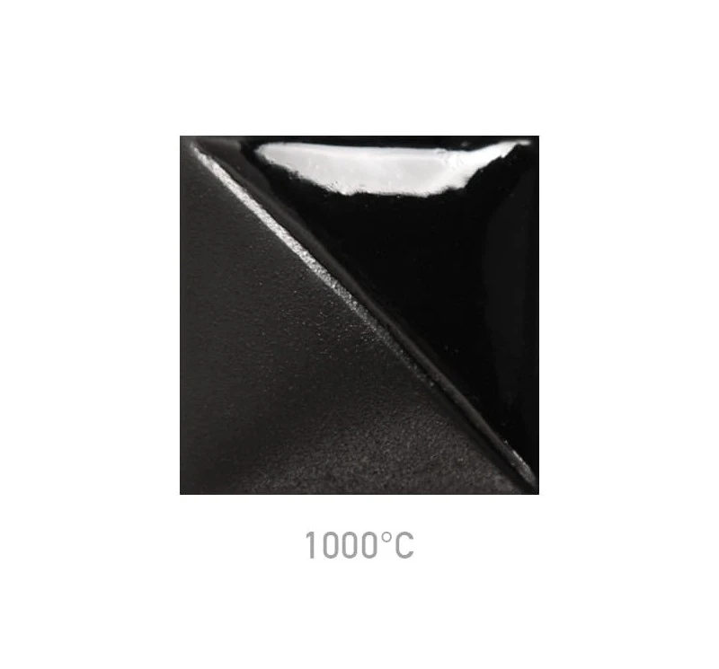 Farba podszkliwna Mayco UG-50 Jet Black przy wypale na niską temperaturę daje mocny, czarny kolor, który wraz ze wzrostem temperatury wypału nie zmienia się znacząco.