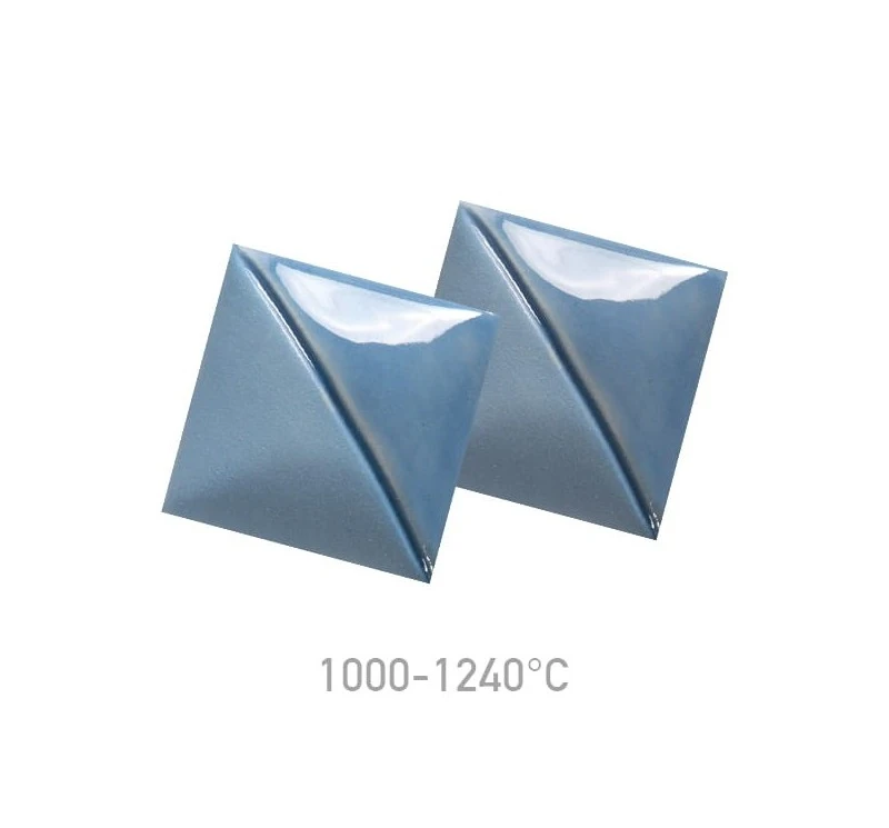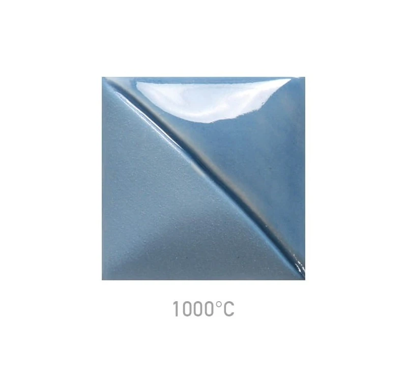 Farba podszkliwna UG-72 Wedgewood Blue przy wypale na niską temperaturę daje jasno-niebieski kolor, który wraz ze wzrostem temperatury wypału się wyszarza.