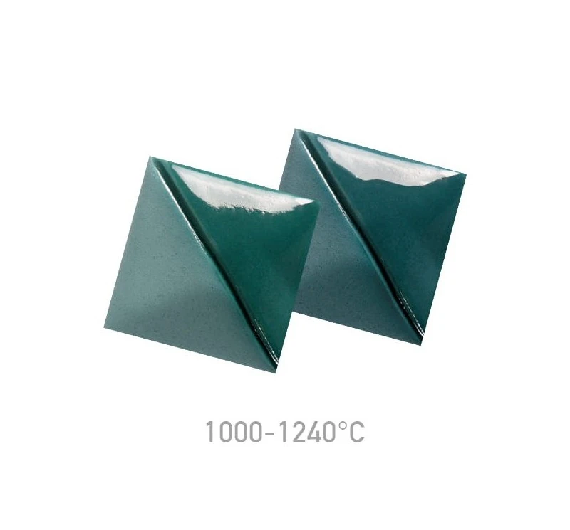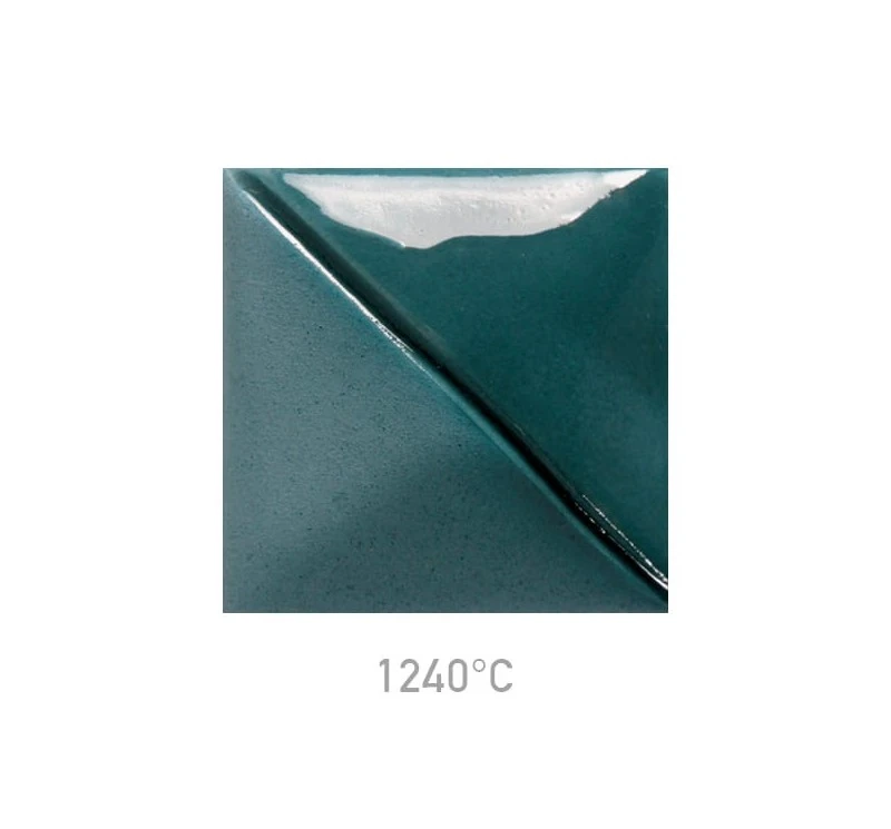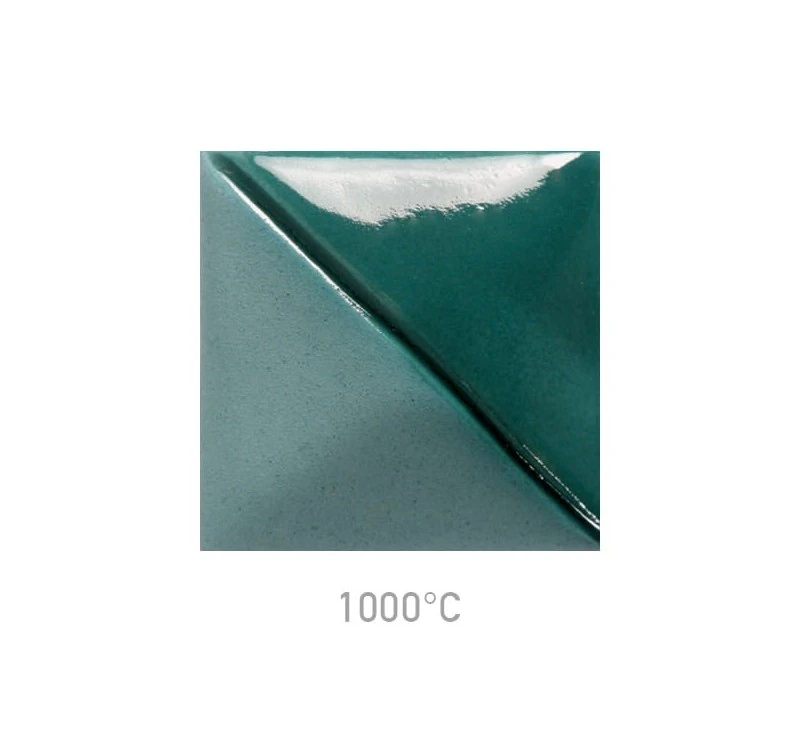 Farba podszkliwna Mayco UG-91 True Teal przy wypale na niską temperaturę daje morski kolor, który wraz ze wzrostem temperatury wypału ciemnieje. Przy wypale redukcyjnym kolor blednie.