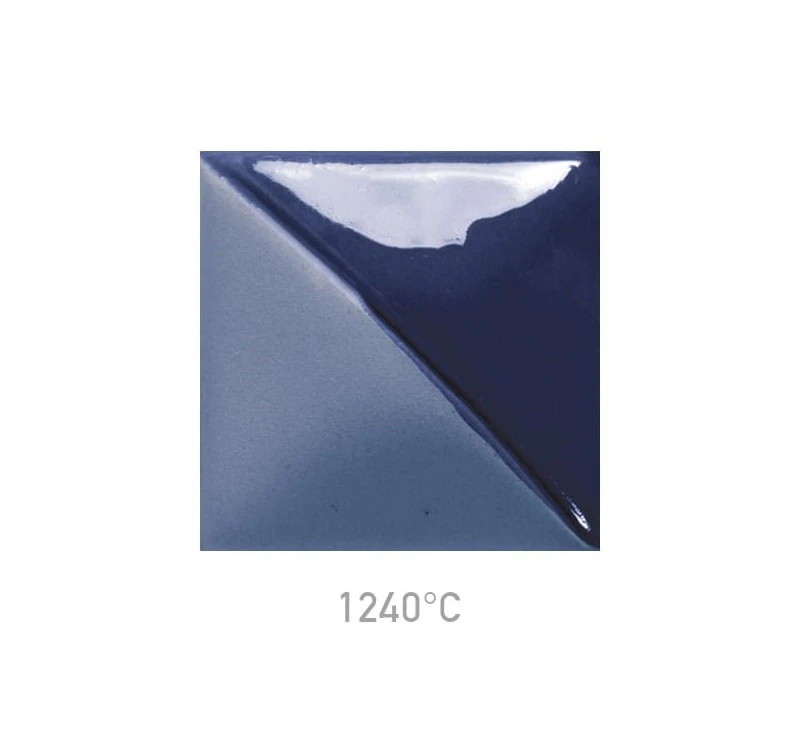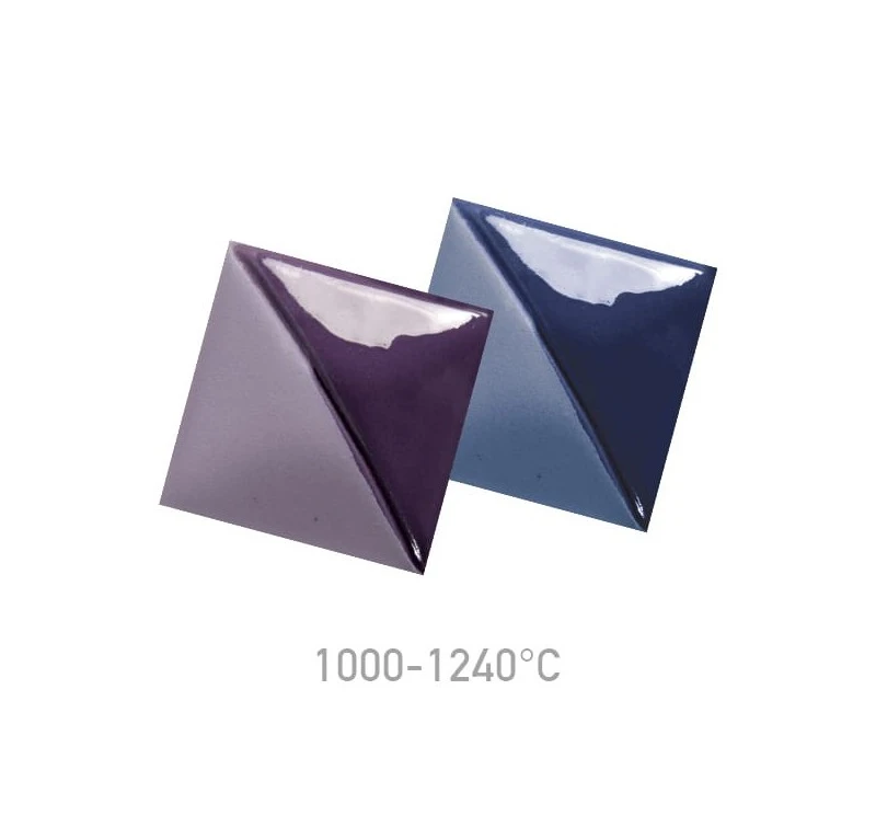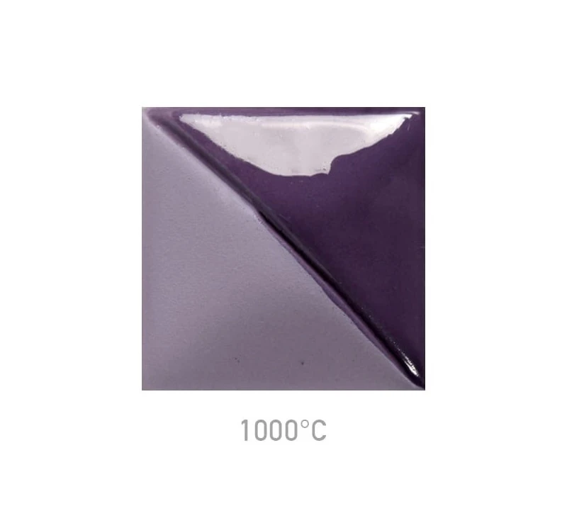 Farba podszkliwna Mayco UG-94 Pansy Purple przy wypale na niską temperaturę daje ciemny, fioletowy kolor, który wraz ze wzrostem temperatury wypału staje się niebieski.