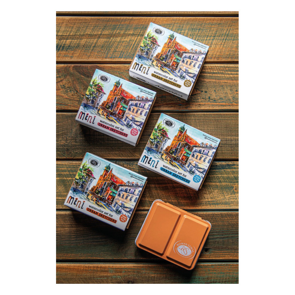 ROMAN SZMAL MINI URBAN SKETCHERS ZESTAW AKWARELI W METALOWEJ KASECIE APRICOT 8 PÓŁKOSTEK