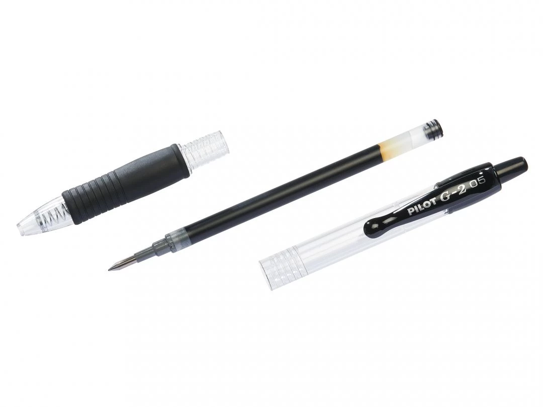 Długopis żelowy serii G-2 renomowanej, francuskiej marki Pilot zapewnia najlepszą jakość pisania, pisze miękko, pozostawiając gładkie i równe linie. Wygodna oprawa wyposażona jest w gumowy uchwyt, który zapewnia komfort nawet w trakcie długiego pisania. Końcówka pisząca wykonana została z węglika wolframu, dzięki czemu cechuje ją trwałość i wytrzymałość. Długopis jest automatyczny, posiada mechanizm chowania wymiennego wkładu oraz specjalne zabezpieczenie przed poplamieniem ubrania.