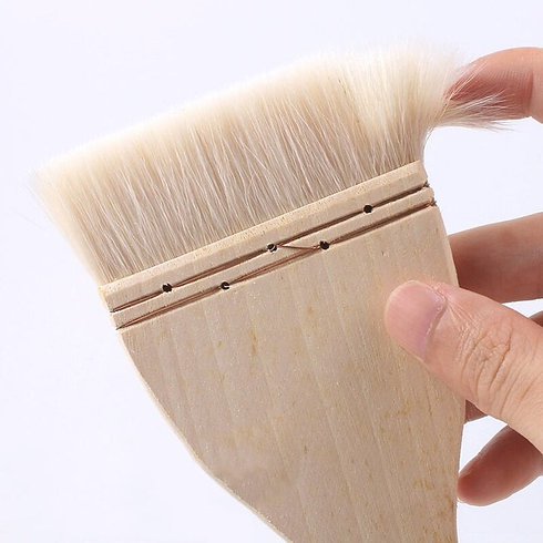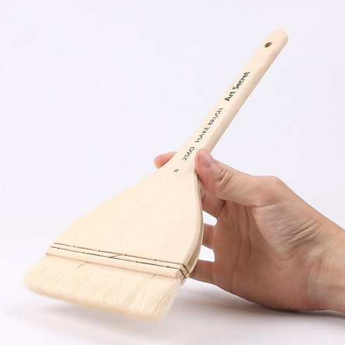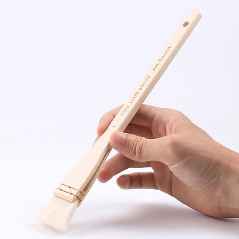Pędzel typu HAKE. Posiada długi płaski trzonek. Włosie jest przymocowane do trzonka za pomocą miedzianego drutu. Pędzel nie posiada skuwki. Pędzel wykonany bardzo estetycznie. Doskonały do technik wodnych lekkich - tusz, akwarela; także do szkliwienia.