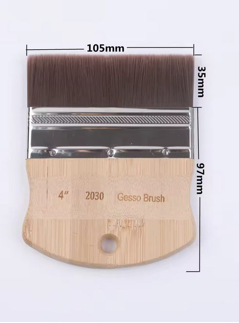 Pędzel z włosia syntetycznego przeznaczony do gruntu, trzonek bambusowy. Szerokość włosia 4 cale (105 mm).