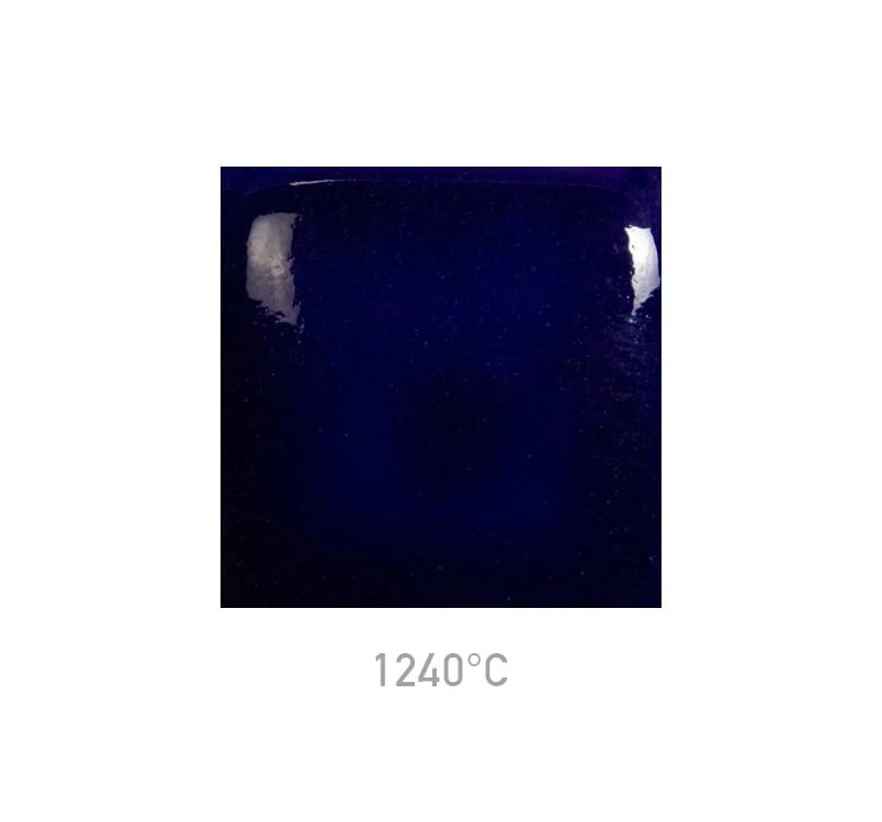 Szkliwo Mayco SP-212 Speckled Moody Blue przy wypale na niską temperaturę daje granatowy kolor z białymi kropkami. Szkliwo wraz ze wzrostem temperatury staje się kobaltowe, a kropki zanikają.