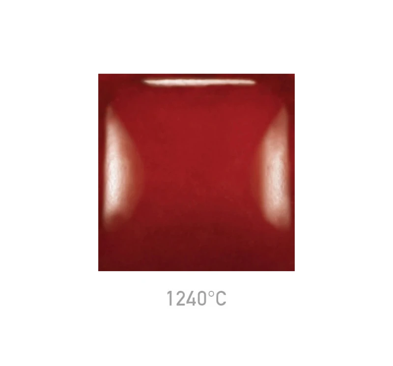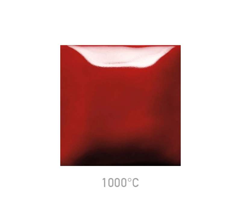 Szkliwo Mayco SC-87 Ruby Slippers przy wypale na niską temperaturę daje intensywny, rubinowy kolor, który wraz ze wzrostem temperatury wypału nieznacznie ciemnieje .