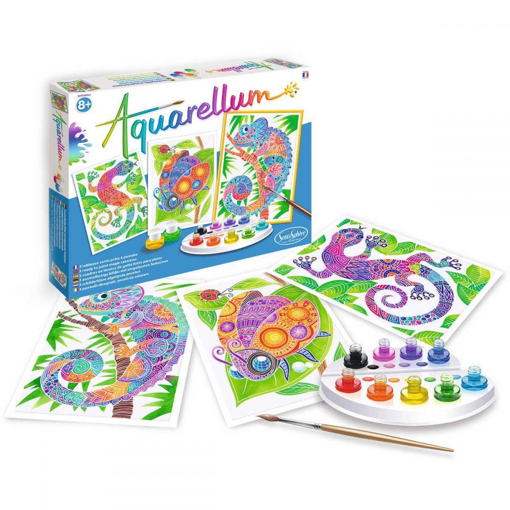Z AQUARELLUM każdy jest wstanie namalować piękne obrazy metodą akwareli. Szkice zabezpieczone są lekko wystającą obwódką utrudniającą "wychodzenie za linię" pędzelkiem, a w miarę zamalowywania obrazu pojawiają się delikatne motywy dekoracyjne. Wzory zestawów AQUARELLUM cechuje atrakcyjny design, kolory farb są jasne, intensywne, pięknie się mieszają. Załączona pipeta umożliwia łączenie kolorów na plastikowej palecie dając nieskończone możliwości tworzenia.