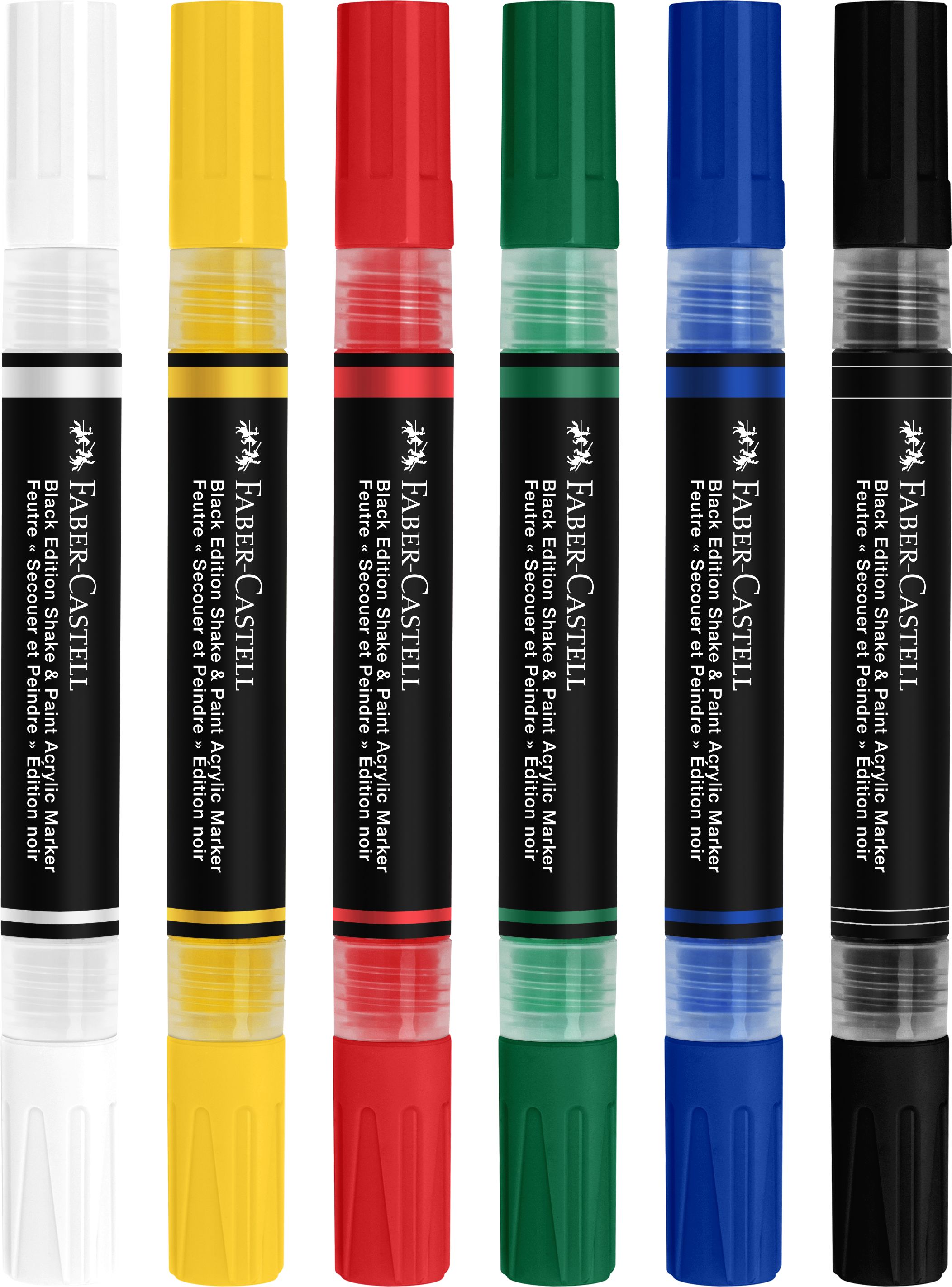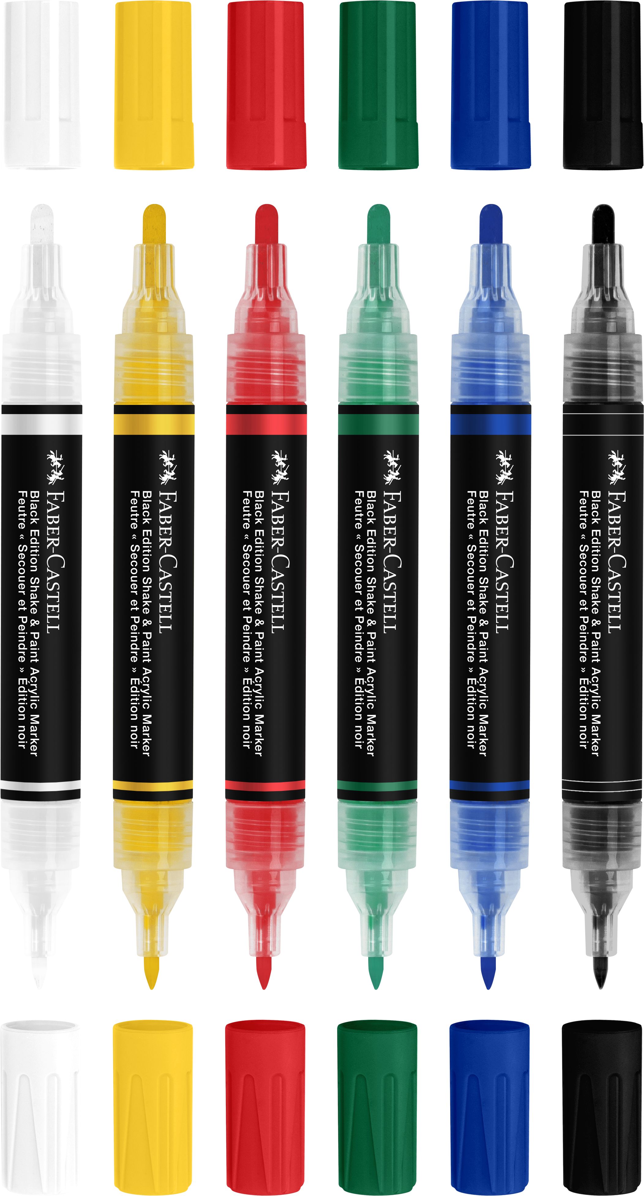 FABER CASTELL MARKERY AKRYLOWE BLACK EDITION SHAKE & PAINT, KOLORY PODSTAWOWE 6 SZT