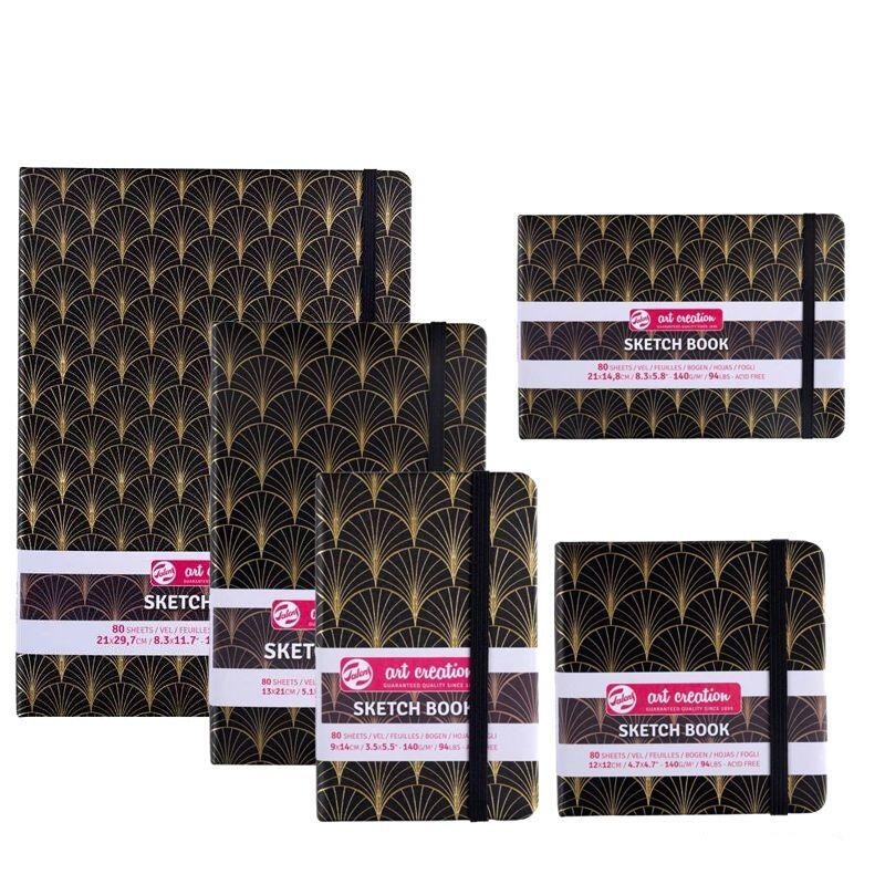 Szkicownik Art Creation w twardej oprawie ze złotym nadrukiem w stylu Art Deco. Notes zawiera biały, bezkwasowy papier o delikatnym perłowym połysku.