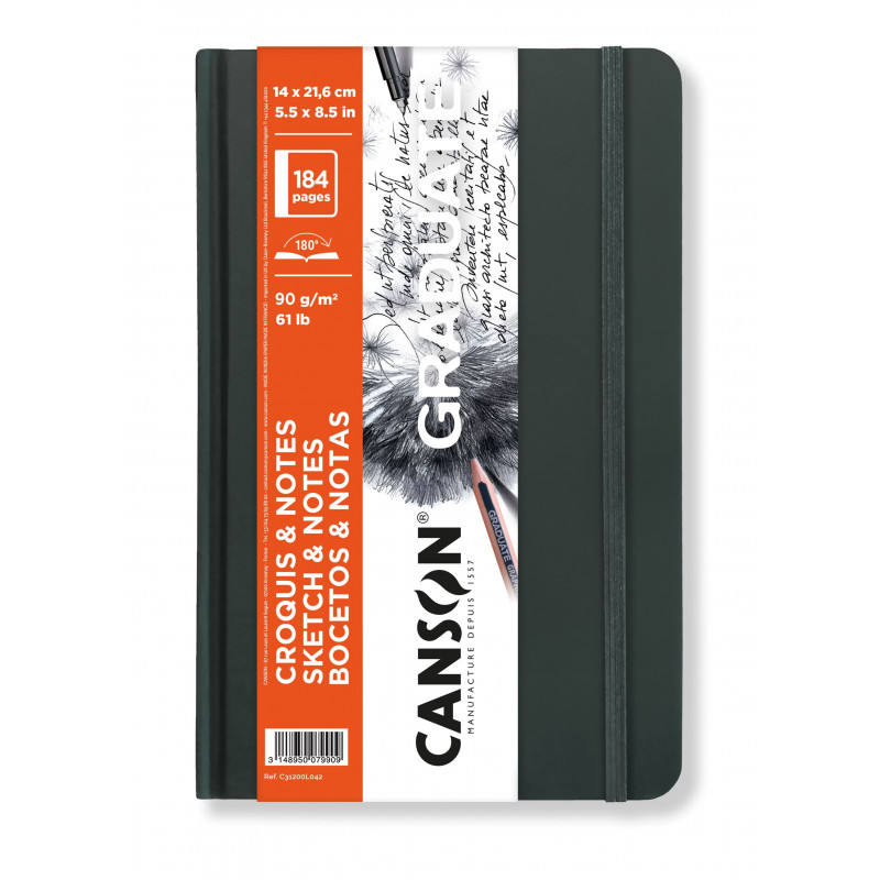 Szkicownik Graduate Sketch & Notes Canson to doskonały dla osób, które lubią pisać i rysować w jednym miejscu. Szkicownik zawiera 184 strony gładkiego, kremowego papieru o gramaturze 90 g/m2, który łatwo się wymazuje i nie niszczy się pod wpływem gumki. Można w nim pisać i rysować ołówkami, kredkami.
