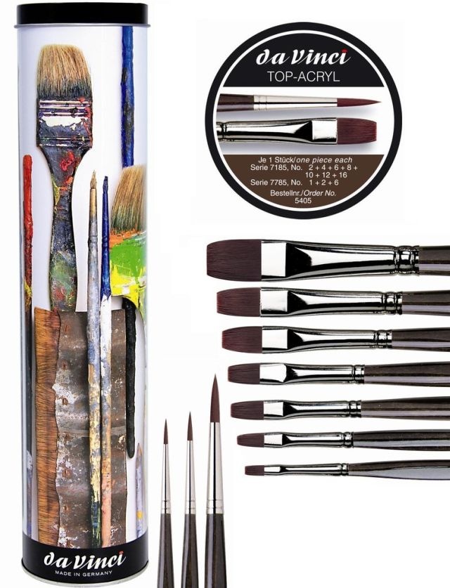 10 pędzli nylonowych DA VINCI TOP-ACRYL w metalowej tubie