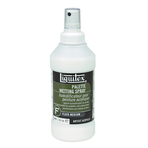Palette Wetting Spray to innowacyjna, płynna żywica akrylowa zaprojektowana, aby spowolnić czas schnięcia farb. Można rozpylić ją na palecie lub bezpośrednio na powierzchni obrazu, o ile jest jeszcze mokra. Medium zapobiega tworzeniu się skórki na powierzchni mokrej farby i pozwala na dłuższe mieszanie kolorów na palecie lub malowanie mokre w mokre na obrazie.