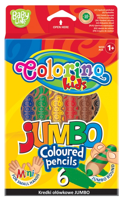 COLORINO Kredki Jumbo w drewnie z temperówką 6 kol