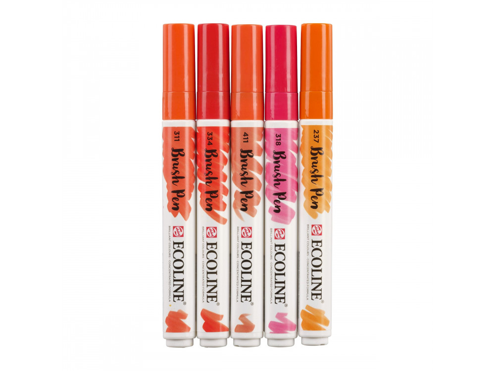 TALENS ECOLINE Brush Pen ZESTAW 5 KOLORÓW CZERWONYCH