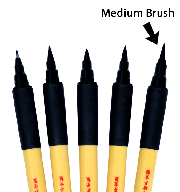 KURETAKE BIMOJI FUDE BRUSH MED BLACK XT5 - pisak pędzelkowy Z WŁOSIEM SYNTETYCZNYM z tuszem do kaligrafii