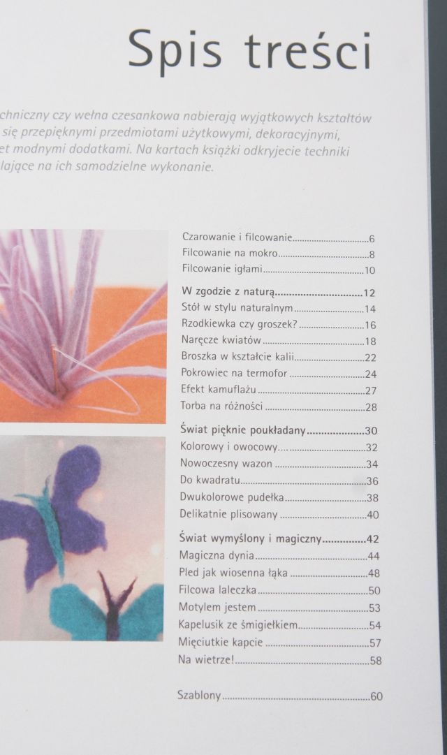 Torebki, broszki, dodatki do ubrań, korale, narzuty, zabawki i czapeczki – to wszystko możesz wyczarować z filcu. Dzięki tej książce nauczysz się , jak – wykorzystując specjalną igłę – przygotować materiał do pracy. Dowiesz się, w jaki sposób samodzielnie wykonać ozdoby z już gotowego filcu. Odkryjesz wszystkie sekrety tego miękkiego, plastycznego i dekoracyjnego materiału.