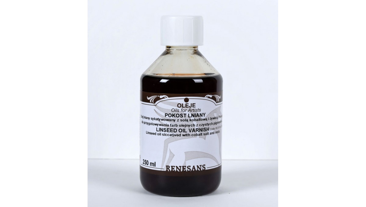Pokost lniany Renesans używany jako dobrze schnące spoiwo w malarstwie olejnym, do przygotowaniafarb olejnych z czystych pigmentów lub jako powłoka ochronna obrazu. Olej lniany sykatywowany z solą kobaltową i żywicą. Ma tendencję do czernienia.
