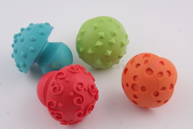 Zestaw czterech gumowych, półkolistych stempli, które mogą być używane zarówno podczas zabawy z farbami jak i przy pracach z masami plastycznymi.