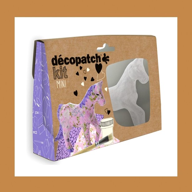 Zestaw DECOPATCH zawiera wszystko co niezbędne do rozpoczęcia zabawy z decoupage'm. W zestawie znajduje się zagruntowana na biało figurka z paper marche, profesjonalny lakier-klej, pędzel oraz papier. Wystarczy za pomocą kleju nanieść kawałki papieru na figurkę by stworzyć prawdziwy bibelocik, który ozdobi każde wnętrze.