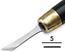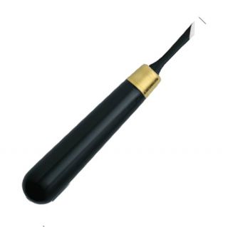 Dłuto do linorytu z hartowanej stali połączone termicznie z rączką z włókna szklanego, dodatkowo wzmocnione okuciem z mosiądzu.
