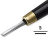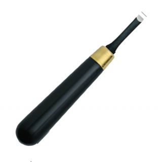 Dłuto do linorytu z hartowanej stali połączone termicznie z rączką z włókna szklanego, dodatkowo wzmocnione okuciem z mosiądzu.