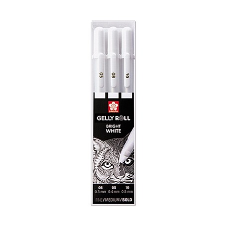 SAKURA GELLY ROLL 3 SZT 05,08,10 WHITE- ZESTAW DŁUGOPISÓW ŻELOWYCH W PLASTIKOWYM PUDEŁKU