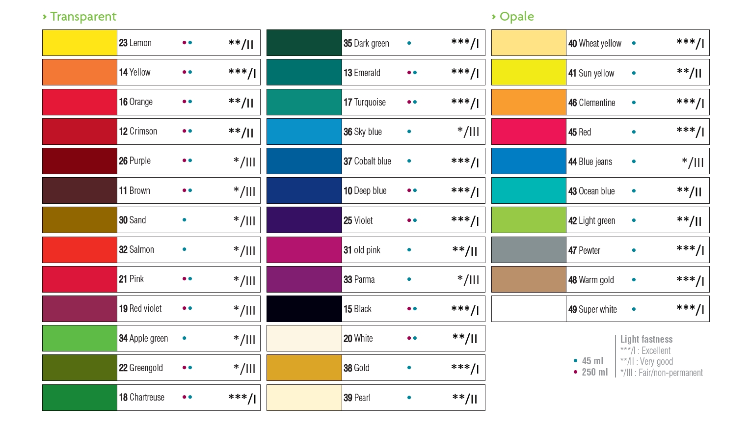 Farby do szkła wyprodukowane we Francji przez firmę Pébéo. Transparentne, na bazie alkidów, są łatwe w nakładaniu i mogą być mieszane ze sobą. Uzyskane kolory cechują się wysoką intensywnością i połyskiem. Farby posiadają dobrą odporność na promienie UV a po wyschnięciu są odporne na delikatne mycie. Używane razem z konturówką Relief imitują klasyczny witraż. Powierzchniowe wyschnięcie zajmuje 2 godziny, natomiast do uzyskania całkowitego efektu należy odczekać 10 godzin. Przyrządy myć spirytusem.