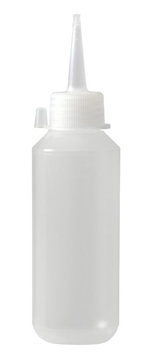 Plastikowa butelka o pojemności 100 ml z transparentnym, precyzyjnym aplikatorem.