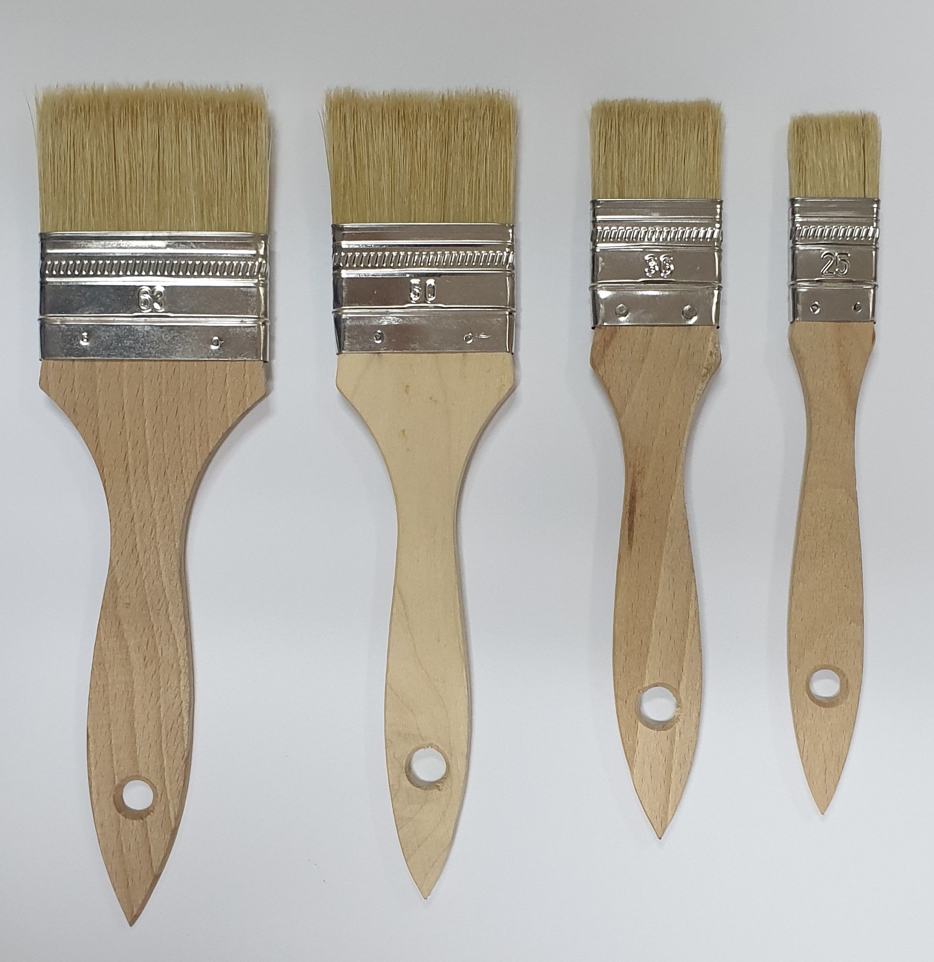 Szlachetniejszy pędzel szczecinowy szeroki doskonały do werniksu i podmalówek.