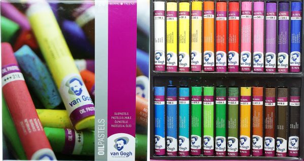 Van Gogh Oil Pastels Starter Set pastele olejowe wysokiej jakości pigmenty (tłuszcze i woski powiązane ze sobą) wytrzymałe i mniej kruche dobra odporność na działania światła na zachowanie kolorów, nawet w perspektywie długoterminowej znakomita zmywalność można używać wody do tworzenia nowych efektów kolorystycznych