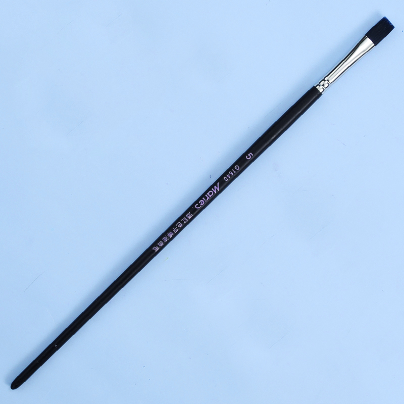 Pędzel nylonowy płaski z włosiem sprężystym i dosyć sztywnym, w kolorze wina. Dedykowany do farb akrylowych, olejnych, temper i gwaszy.