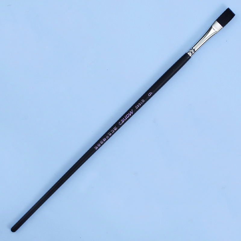 Pędzel nylonowy płaski z włosiem sprężystym i dosyć sztywnym, w kolorze wina. Dedykowany do farb akrylowych, olejnych, temper i gwaszy.