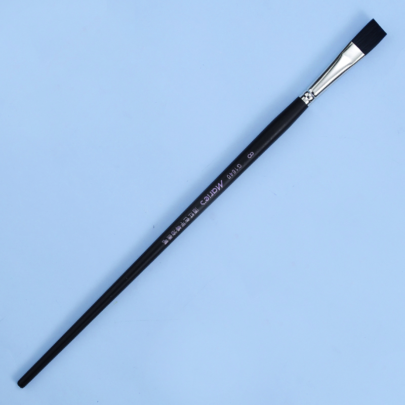 Pędzel nylonowy płaski z włosiem sprężystym i dosyć sztywnym, w kolorze wina. Dedykowany do farb akrylowych, olejnych, temper i gwaszy.