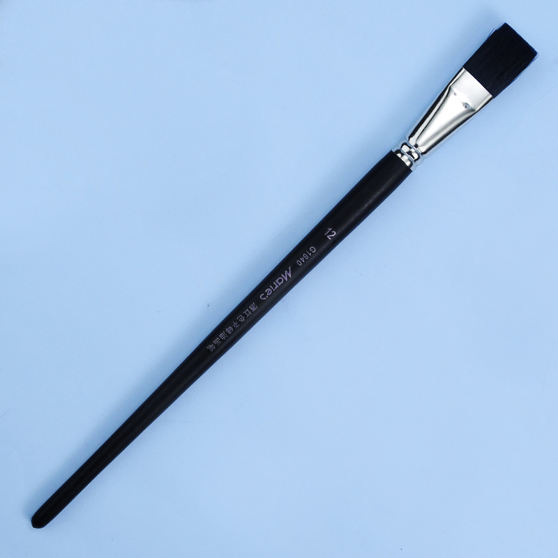 Pędzel nylonowy płaski z włosiem sprężystym i dosyć sztywnym, w kolorze wina. Dedykowany do farb akrylowych, olejnych, temper i gwaszy.