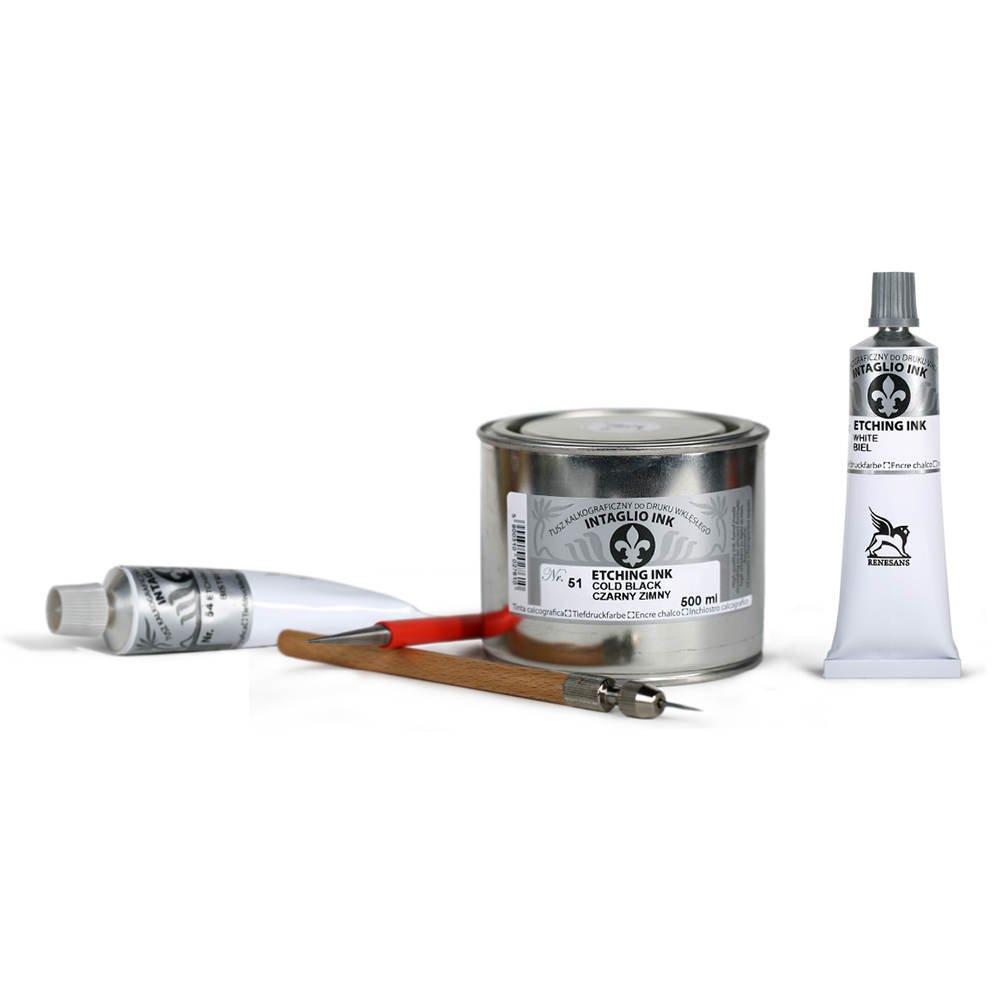 Farba graficzna- czarny zimny na bazie oleju do technik wklęsłodruku, takich jak: akwaforta, akwatinta, miedzioryt, sucha igła i inne