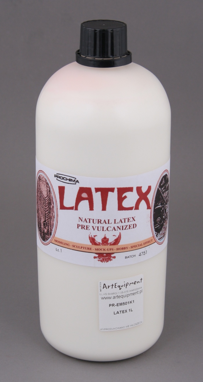 Lateks z gumy naturalnej włoskiej firmy Prochima w postaci płynnej (61% ciało stałe), wstępnie wulkanizowany i stabilizowany przeciwutleniaczami. LATEX zawiera również środek tiksotropowy, który umożliwia zastosowanie warstw w pionie. Jest to guma w roztworze gotowa do użycia bez dodatków. Guma lateksowa nadaje się szczególnie do budowy elastycznych form bez szwu, dla wszystkich typów figur, rzeźb i obiektów. Lateks jest biały nieprzejrzysty. Jest bardzo odporny na działanie kwasów i soli, może być wykorzystywany do wylewania zimnej żywicy, gipsu, wosku mającego niską temperaturę topnienia.