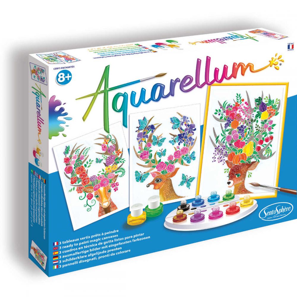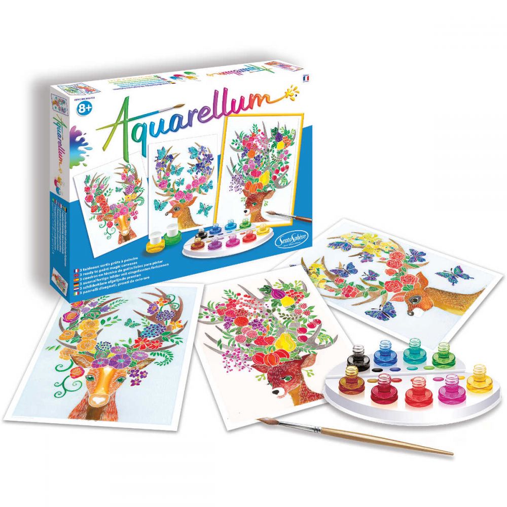 Z AQUARELLUM każdy jest wstanie namalować piękne obrazy metodą akwareli. Szkice zabezpieczone są lekko wystającą obwódką utrudniającą "wychodzenie za linię" pędzelkiem, a w miarę zamalowywania obrazu pojawiają się delikatne motywy dekoracyjne. Wzory zestawów AQUARELLUM cechuje atrakcyjny design, kolory farb są jasne, intensywne, pięknie się mieszają. Załączona pipeta umożliwia łączenie kolorów na plastikowej palecie dając nieskończone możliwości tworzenia.