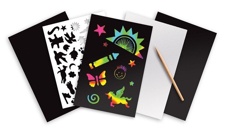 Scratch Art Zdrapki Holograficzne - Tęcza Melissa&Doug. Niesamowicie kreatywna zabawa, do tworzenia wspaniałych wzorów i obrazków. Zdrap czarną, wierzchnią warstwę za pomocą dołączonego rysika i odkryj magie barw kryjącą sie pod spodem! Stworzysz swoje własne pomysły, czy będziesz korzystać z szablonów? Tak czy inaczej wspaniała zabawa gwarantowana!