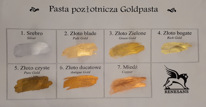 - Pasta pozłotnicza przeznaczona do retuszu i pozłotnictwa – baza spirytusowa.