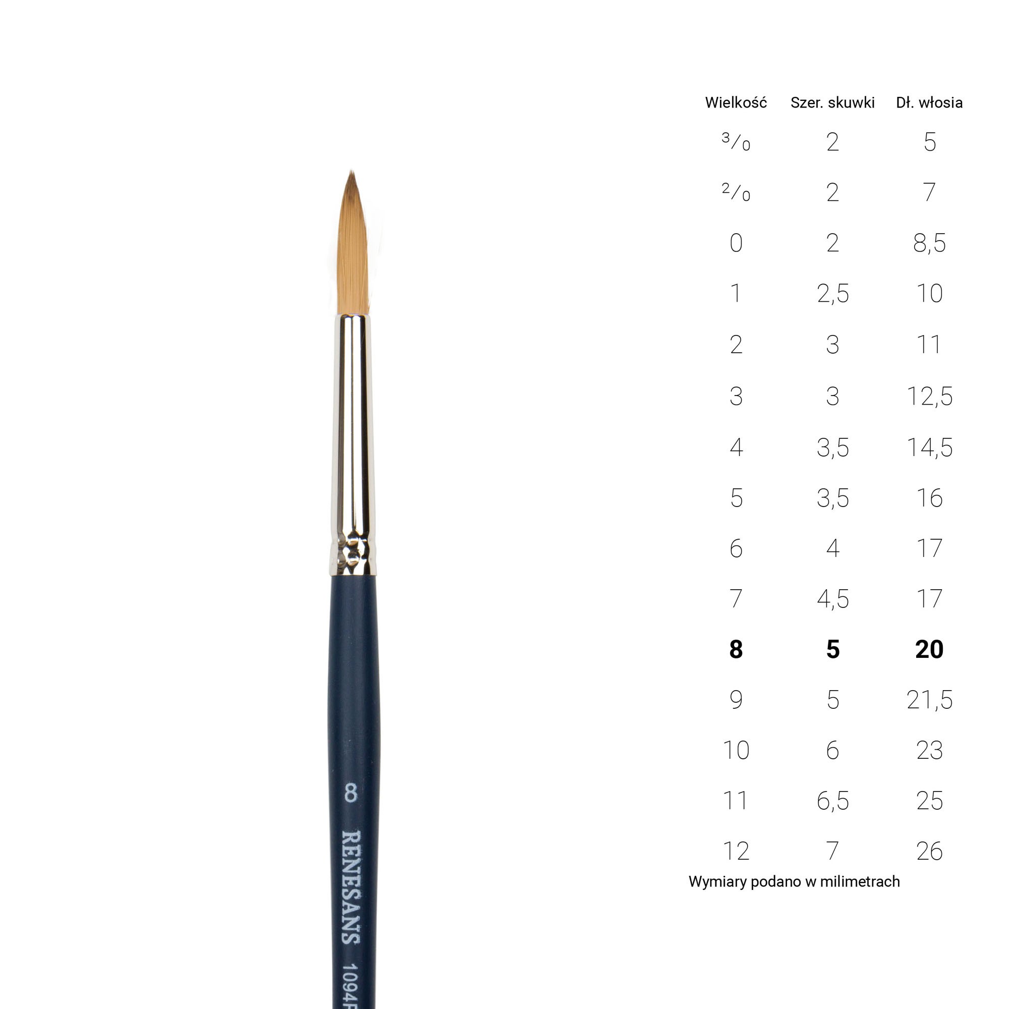 PĘDZEL IMITACJA KUNY OKRĄGŁY 1094R NR 8