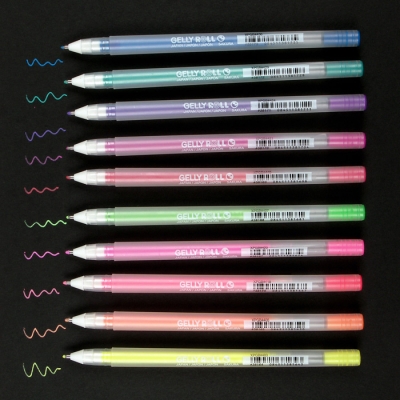 Pisaki Sakura Gelly Roll Moonlight mają mocne, kryjące kolory, które są dobrze widoczne zarówno na czarnych, kolorowych, jak i białych papierach, matowych lub błyszczących. Tusz długopisów żelowych Sakura Moonlight jest nietoksyczny i nie przebija przez większość papierów. Kolory Sakura Moonlight Fluo wspaniale świecą na, czarnym papierze, w świetle ultrafioletowym. Doskonale sprawdzają się do bullet journalu, notowania w kalendarzu, dekorowaniu, tworzenia spersonalizowanych kartek okolicznościowych, scrapbookingu, rysowania mandali i letteringu.
