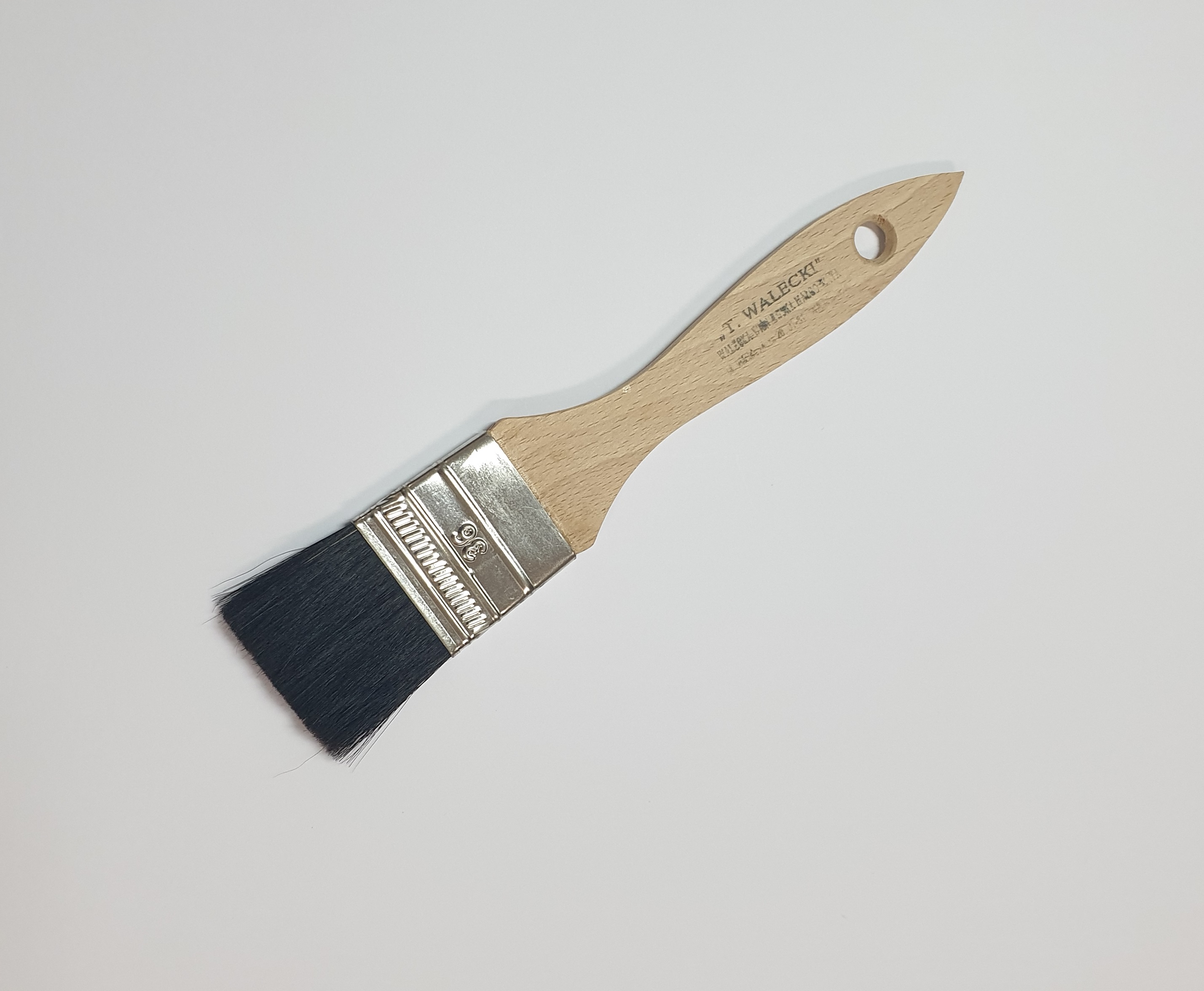 Pędzel z włosia bawolego szeroki (36 mm) doskonały do werniksu i akwareli. Pędzel z włosiem ułożonym, a nie ciętym.