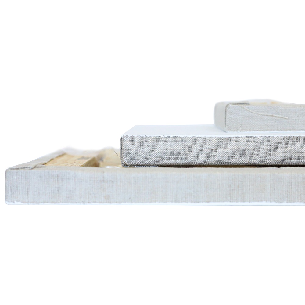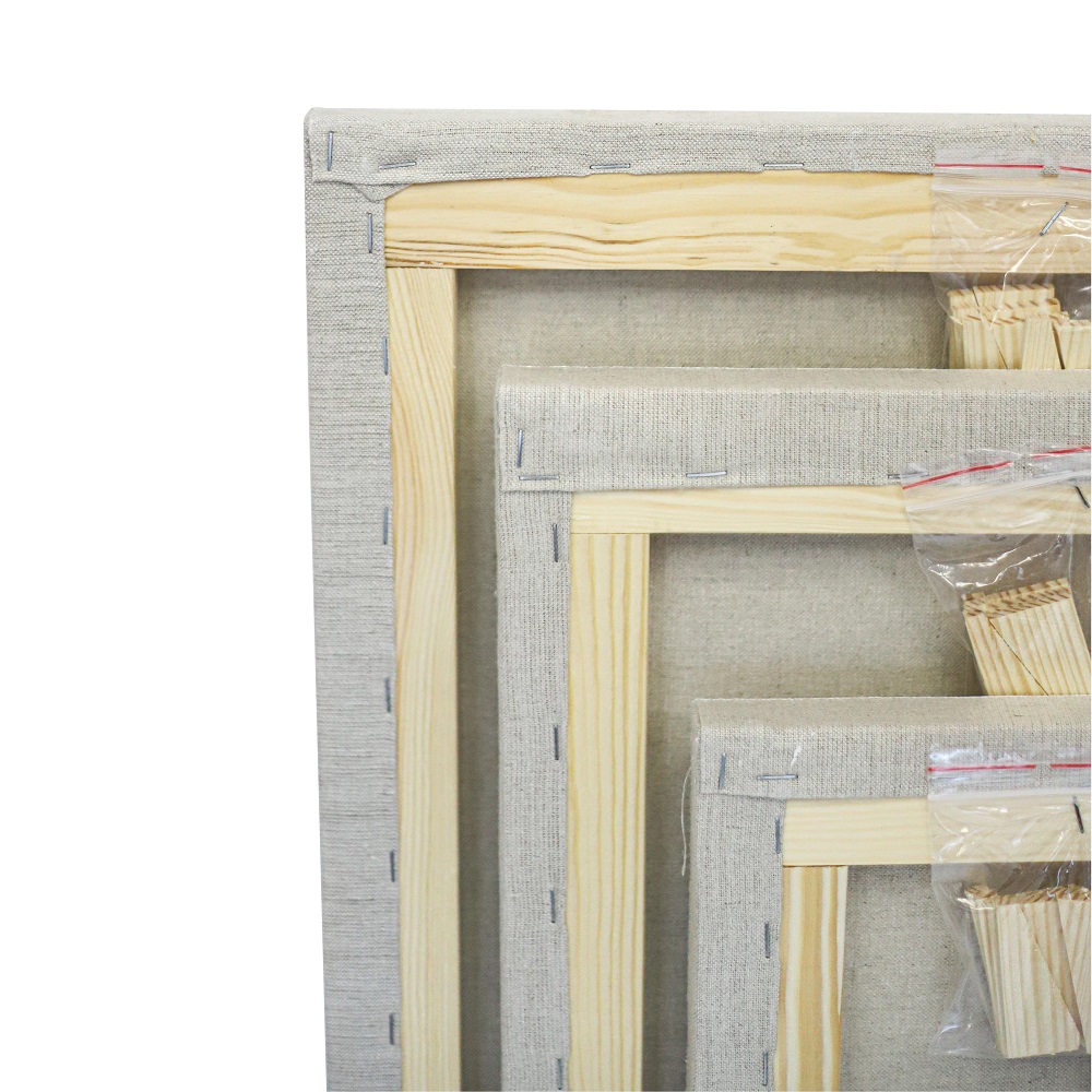 Podobrazia lniane wykonane na sosnowych krosnach. Do produkcji wykorzystywany jest 100% len produkcji polskiej. Po naciągnięciu na krosno, płótno lniane jest przeklejane żelatyną, a następnie gładzone i trzykrotnie gruntowane gessem. Dodatkowo, płótno zabezpieczono zszywkami z tyłu.