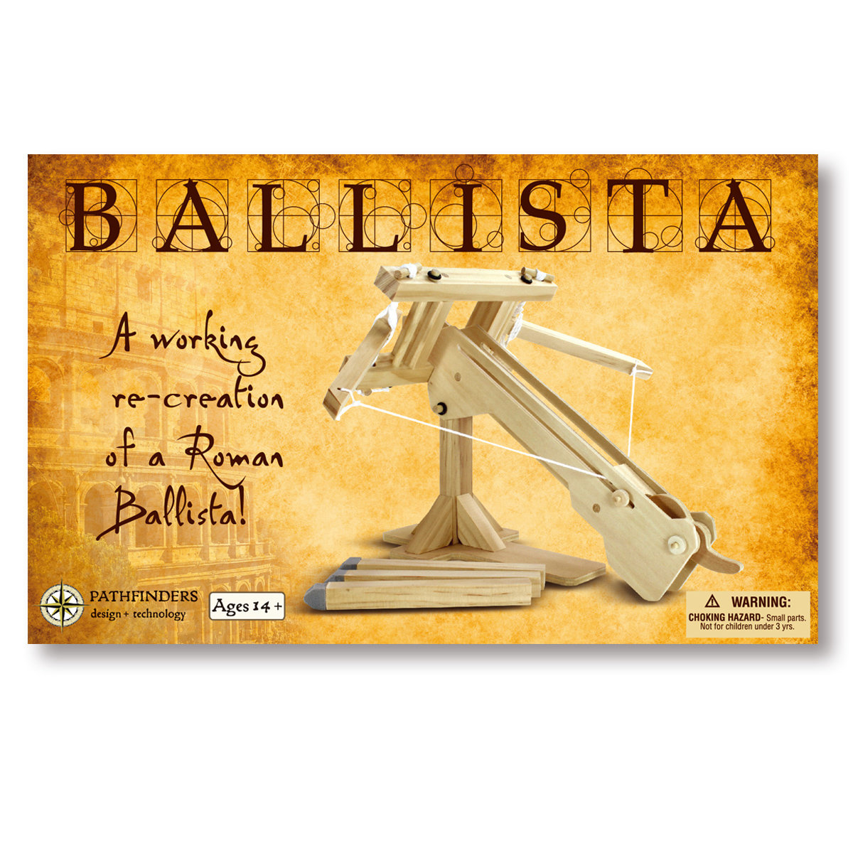 Wynaleziona ponad 2000 lat temu przez Greków, legendarna "Ballista" do samodzielnego złożenia. W pełni funkcjonalna, posiada ruchome części. Konstrukcja składa się z drewnianych elementów, zaś strzały posiadają piankowe groty, dzięki czemu są bezpieczne ( mimo wszystko, nie wolno celować w takie miejsca jak głowa czy oczy ). W zestawie znajduje się również obszerna instrukcja zawierająca nie tylko rysunki elementów i poszczególnych etapów składania, lecz również ciekawe opisy historyczne dotyczące projektu.Właściwości:
